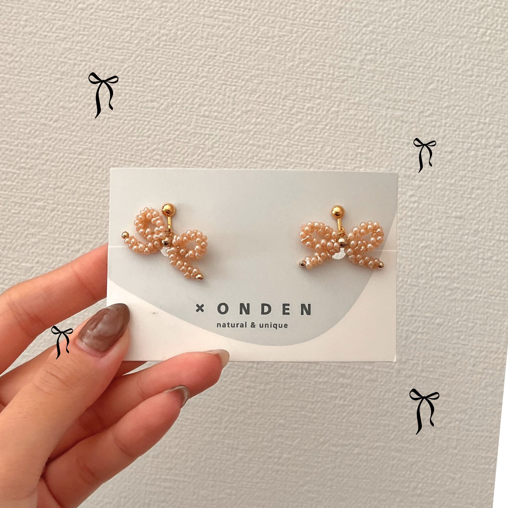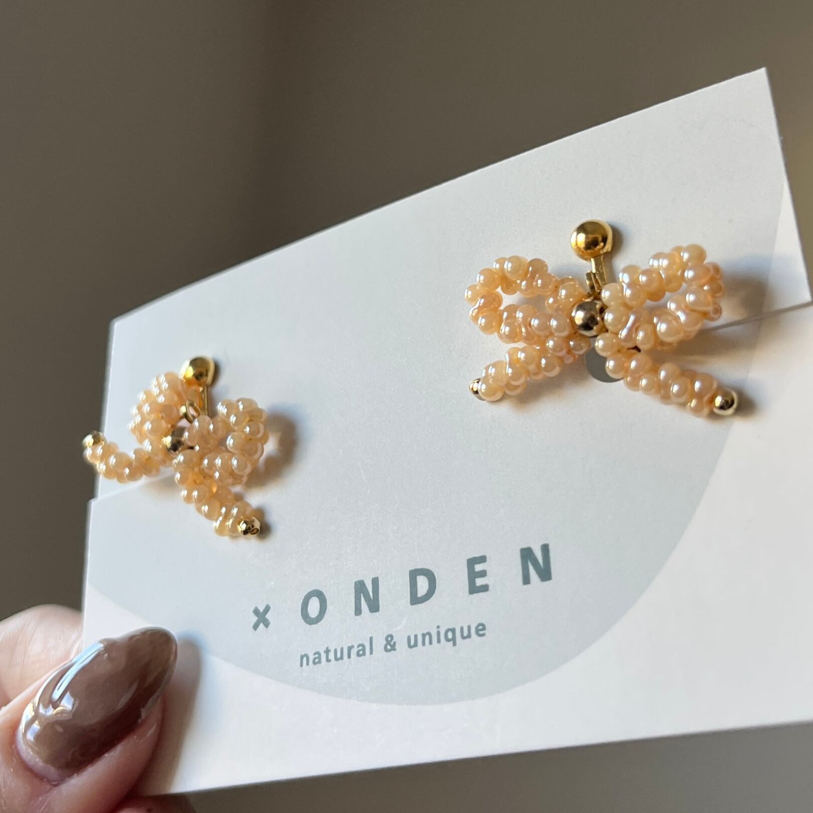天然ニュアンスカラーの可愛いパールイヤリング。