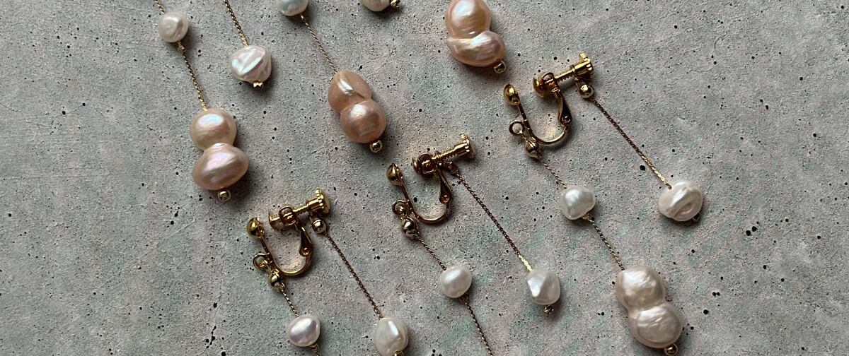 天然物の淡水パールを使用した、 エレガントなクリップオンイヤリング。 存在感のある双子のパールに加え 耳の裏に揺れる繊細なチェーンと小さなパールが、 さりげなく一味違う華やかさを演出します。 ・coordinate 肌見せの多いキャミソールワンピースや 特別な日のドレススタイルに。 -------- 【×ONDEN】 こだわりのビーズとユニークな淡水バロックパールを使った、 どこか個性の出るアクセサリー。 . . . _________________ #イヤリング #個性派イヤリング #淡水パールアクセサリー . #ハンドメイドアクセサリー .